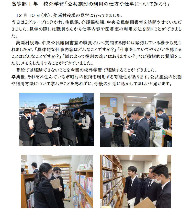 12月に行われた茨城県高等学校総合文化祭作品展の会場の様子が下記写真をクリックすることによりご覧いただけます。高等部生が制作した美術作品や作業製品が多数展示されています。是非ご覧ください。